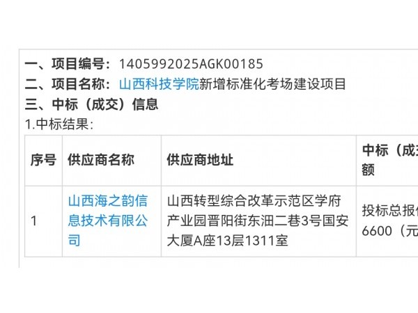 【山西海之韵信息技术中标山西科技学院项目】