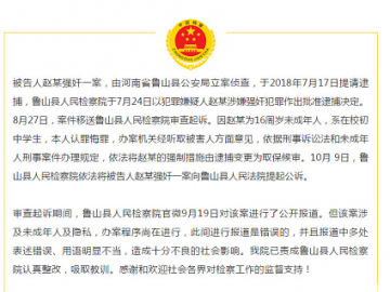 关注!河南鲁山县“未成年强奸案冰释前嫌”嫌疑人被提起公诉
