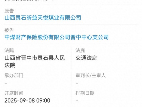 【灵石昕益天悦煤业起诉中煤财险晋中公司】