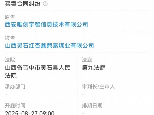 【西安唯创宇智起诉灵石红杏鑫鼎泰】