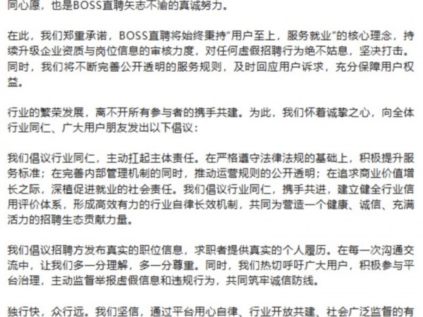 BOSS直聘回应招聘市场乱象:建议发真实职位信息