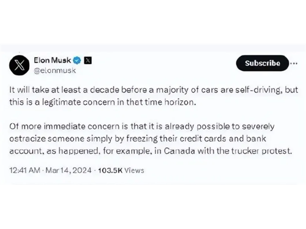 马斯克:大多数汽车至少需要10年才能实现自动驾驶