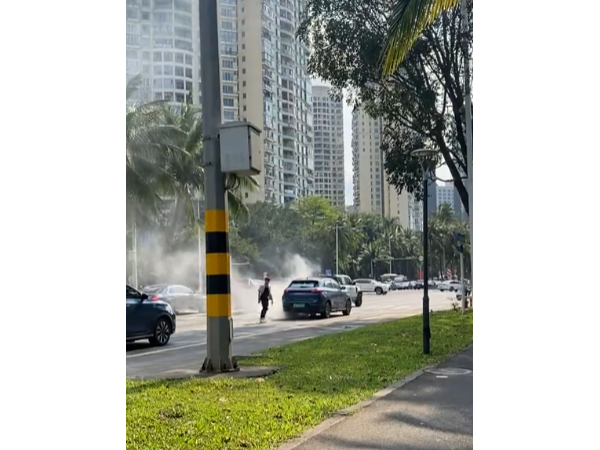 海口一辆新能源汽车街头自燃:从冒烟到烧毁仅5分钟 车主旁观无奈