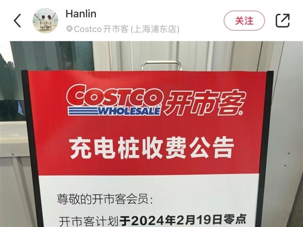 全国开市客充电桩今日起不再免费:每一度电收1.2元 慢充改为正常充