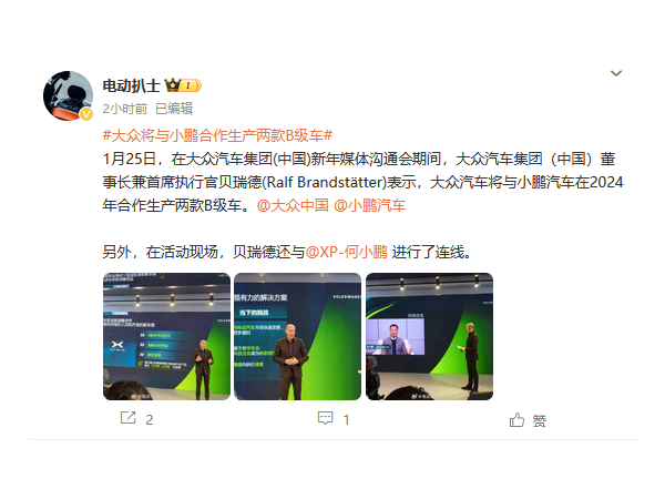 何小鹏:合作非常高效 小鹏将与大众共同生产两款B级车