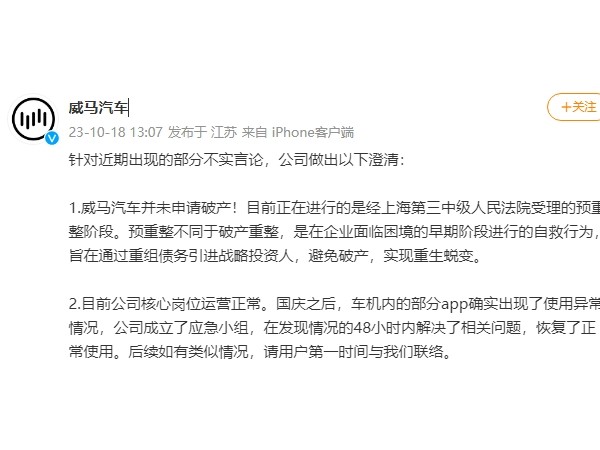 威马汽车澄清公告