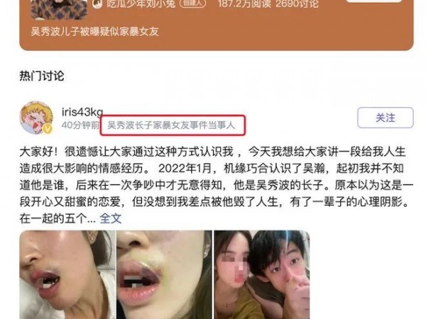 吴秀波儿子被曝家暴多次并出轨!