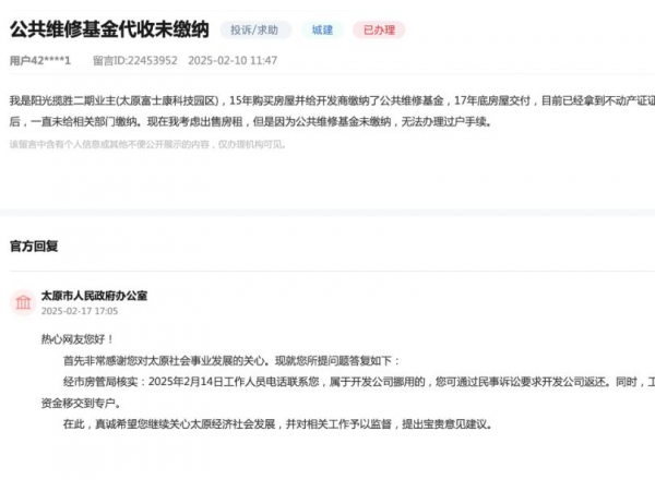 山西省物业投诉举报受理转办系统启用