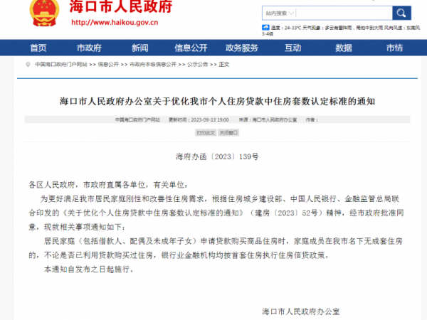 商会发布|海口宣布执行“认房不认贷”政策