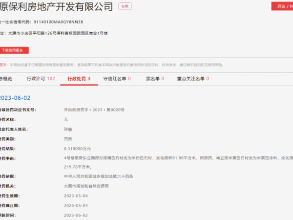违反城乡规划法 太原保利房地产开发有限公司被罚