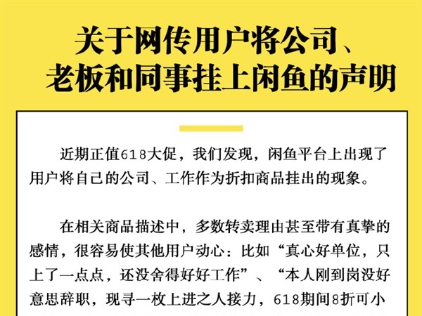 多人把老板、同事挂上闲鱼 官方回应:又不是你的 不允许卖