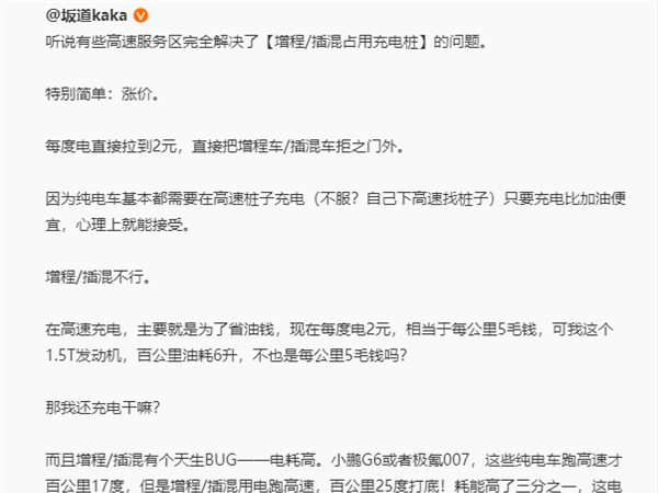 博主爆料有高速服务区解决了插混车占桩问题:方法简单到令人惊讶