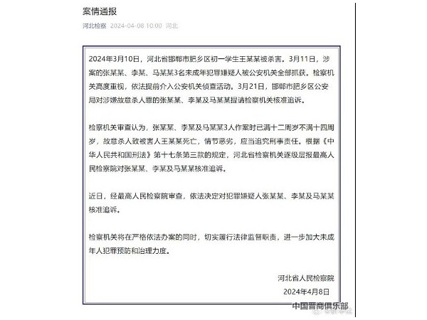 检方通报邯郸初中生遇害案
