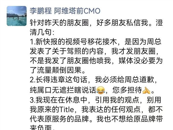 吐槽周鸿祎“连脚都没资格放油门上竟能评车”:李鹏程澄清5点