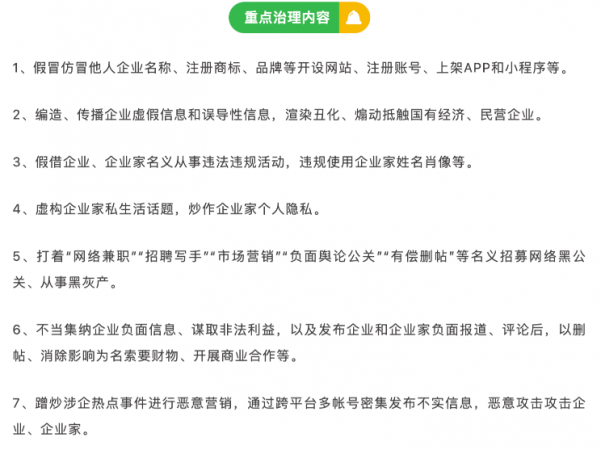 微信:集中整治涉企业、企业家的虚假不实和侵权信息,严厉打击恶意炒作行为