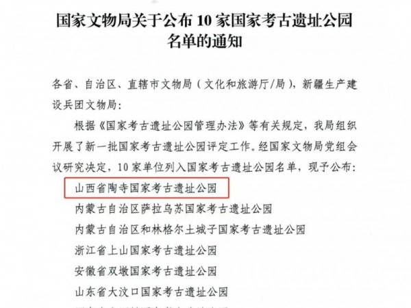 陶寺遗址入选国家考古遗址公园