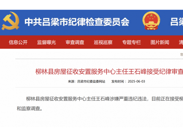 柳林县房屋征收安置服务中心主任王石峰接受纪律审查和监察调查