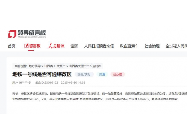 山西综改区啥时候通地铁?官方回复来了!
