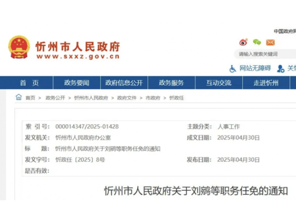 忻州市人民政府职务任免通知