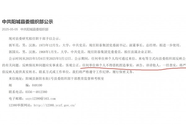 山西阳城县郭军亮拟进一步使用 任何单位和个人不得借机捏造事实!