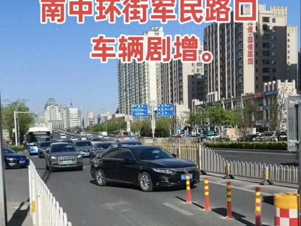 太原南中环军民路护栏,主路畅,辅路堵成“一锅粥”
