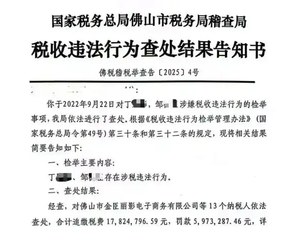 千万粉丝网红“小影夫妇”偷逃税被追缴罚款超2300万元,目前仍正常开播