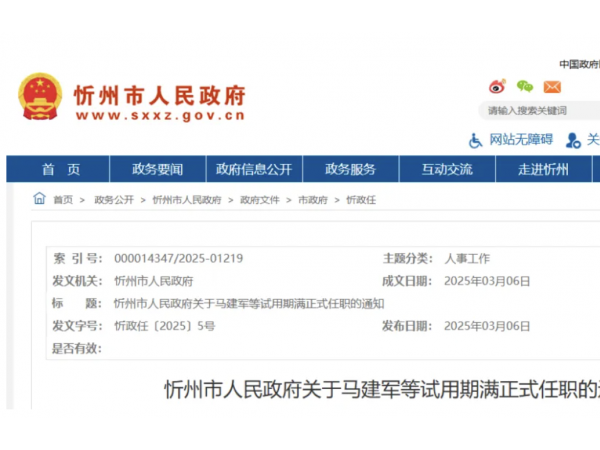忻州市人民政府职务任免通知