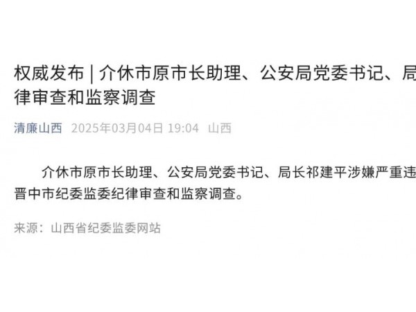山西介休市原市长助理、公安局党委书记、局长祁建平被查