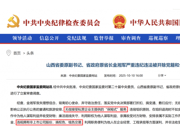 山西省委原副书记、省政府原省长金湘军严重违纪违法被开除党籍和公职
