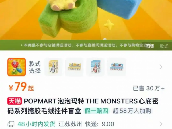 迷你版LABUBU开售卖爆,多平台已售罄,此前79元隐藏款有代抢开价2699元