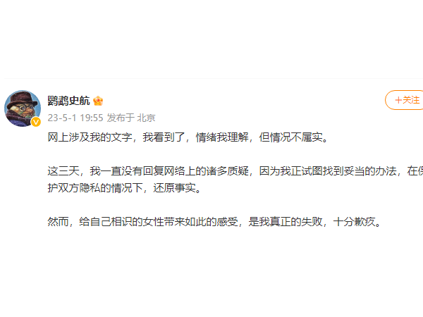 史航回应性骚扰:不属实