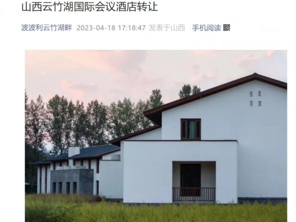 山西煤老板文旅地产大佬闫利明要转让云竹湖国际会议酒店