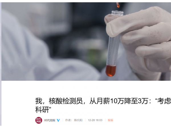 核酸检测员自述:从月薪10万降至3万,考虑回去做科研