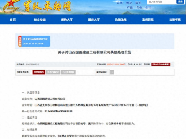 围标串标,山西国图建设工程有限公司被列入失信名单
