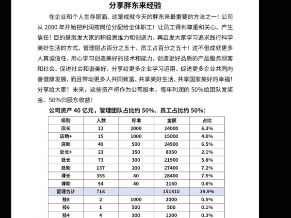 胖东来40亿元资产将作为股本,每年拿出一半利润给员工发奖金,一半利润给股东:8633名员工人均标准为20万,12名店长共分2.4亿资产利润