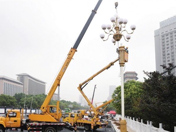 山西太原迎泽大街开始安装中华灯