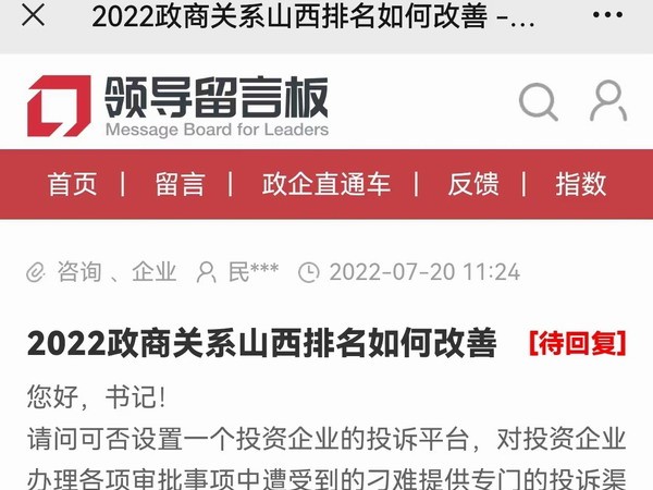 人民网网友问山西省委林武书记能否开通“营商环境投诉平台”