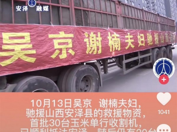 吴京团队捐赠30台收割机 山西安泽急需玉米烘干机67台