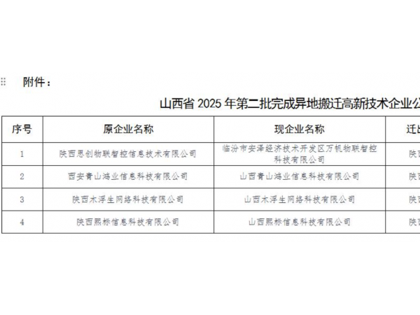 4家高新技术企业拟异地搬迁至山西