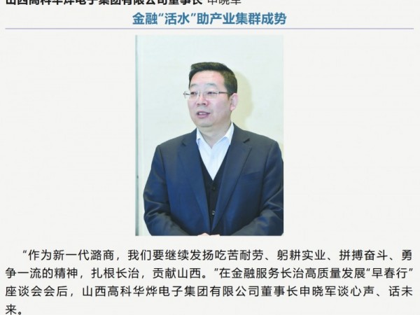 山西高科华烨电子集团有限公司董事长 申晓军 金融“活水”助产业集群成势