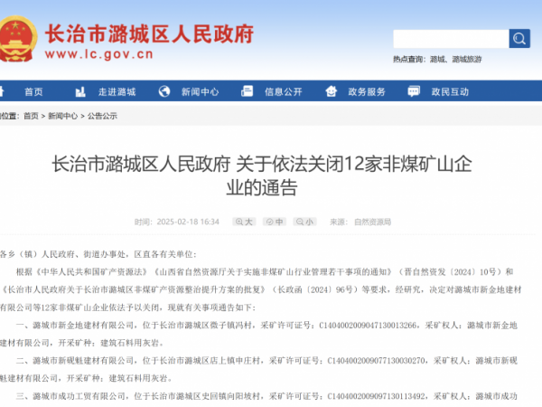 长治潞城区大动作! 关闭12家非煤矿山企业