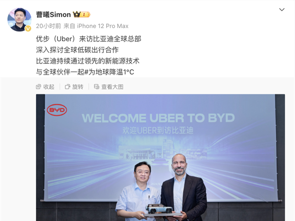 网约车鼻祖Uber CEO到访比亚迪:上线10万辆比亚迪电动车
