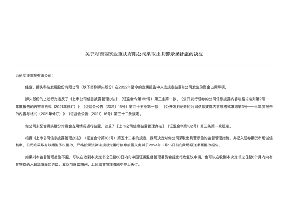 未按规定披露重要信息 西丽实业被警示