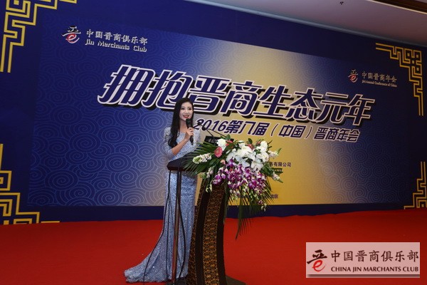 年会场内下午为2016晋商颁奖典礼及峰会,由山西广播电视台山西经济频道主持人张晓敏主持。