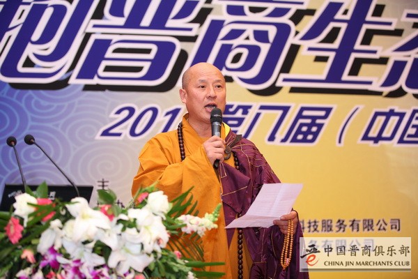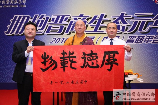 释觉一法师现场书写“厚德载物”赠送晋商年会组委会
