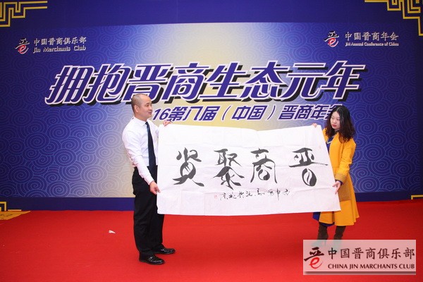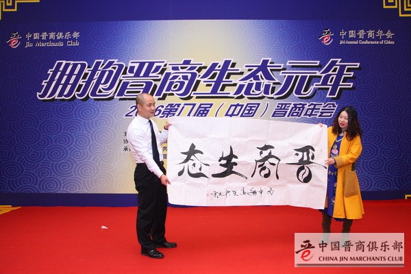 中国晋商俱乐部理、山西百家商会企业管理咨询有限公司董事长赵帆向中国晋商俱乐部赠送贺礼