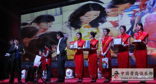 在该启动仪式前,为山西祁县一位从四岁就挑起了家庭重担的女孩进行了义捐,各地市百强班级现场嘉宾纷纷奉献大爱,现场共捐出现近十万元善款,一位晋商企业家还承诺每年为这位祁县女孩提供1万元支持,直到她大学毕业。
