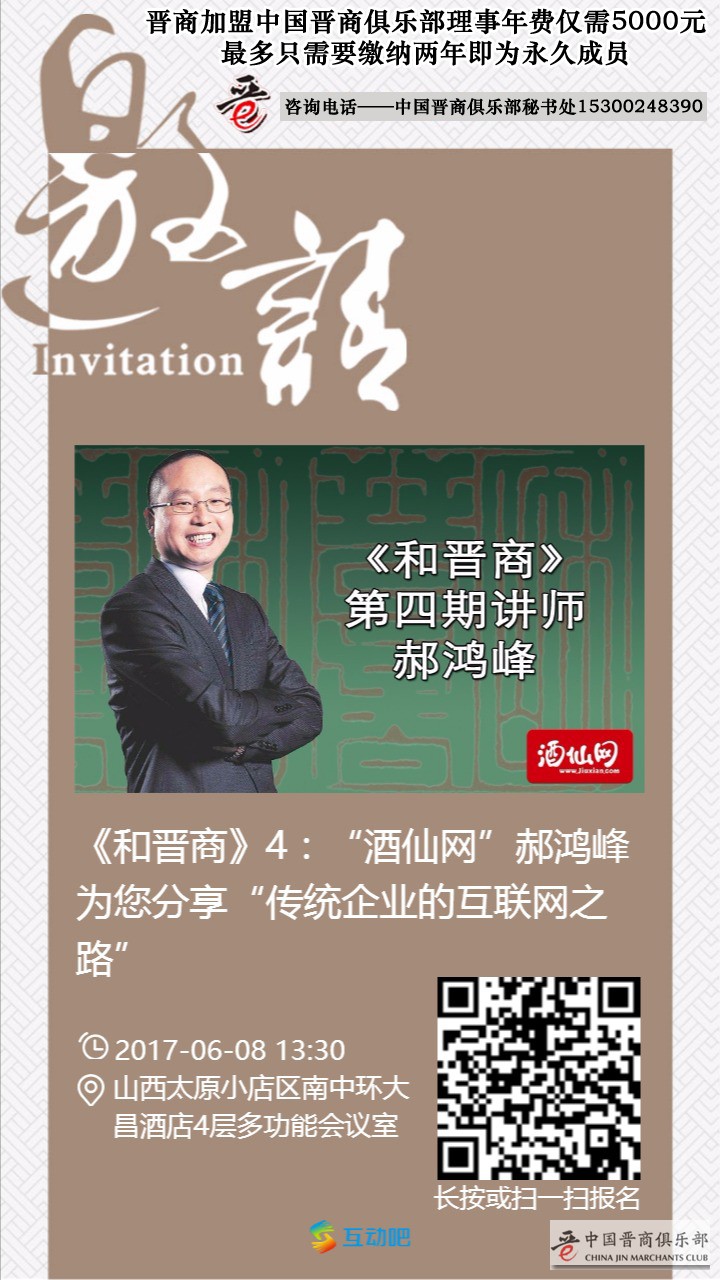 晋商晋才回乡:新晋商郝鸿峰6月8日到太原 约您《和晋商》