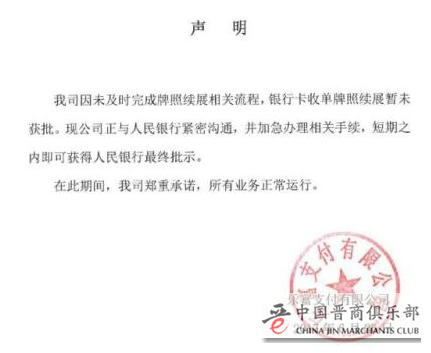 26日下午,乐富支付在官网发布公告称,因未及时完成牌照续展相关流程,银行卡收单牌照续展暂未获批。并称正与央行紧密沟通,加急办理相关手续,短期内可获得最终批示。