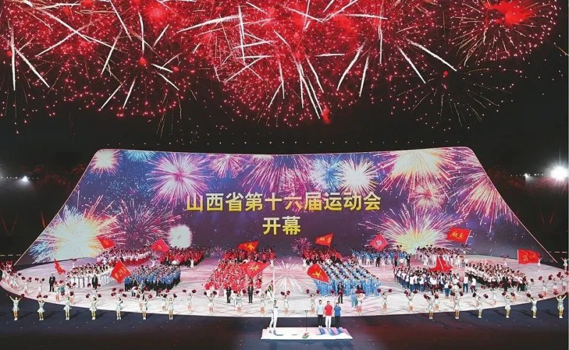 在全省上下深入学习贯彻习近平新时代中国特色社会主义思想、进一步加快转型发展、奋进“两个基本实现”目标的重要时刻,8月8日晚,山西省第十六届运动会在大同市正式开幕。省委书记、省人大常委会主任蓝佛安出席开幕式并宣布运动会开幕。省委副书记、省长金湘军致开幕辞。省委常委、大同市委书记卢东亮致欢迎辞。省领导张吉福、李凤岐、邓玉恩、谢红、李青山,驻晋某部政委华聚臣、武警山西总队司令员任明龙出席开幕式。省运会组委会主任、副省长熊继军主持。立秋时节,金风送爽。夜幕下的大同市体育中心体育场华灯璀璨、流光溢彩。开幕式在众目期待中正式开始。伴随着《歌唱祖国》的昂扬旋律,8名持旗手护拥着鲜艳的五星红旗健步走入体育场。随后,在省运动会会旗、第十六届省运会会旗带领下,裁判员代表方阵、11市代表队意气风发入场,向观众们挥手致意。全场观众以热情的掌声和欢呼声,欢迎运动员们的到来。入场仪式完毕,全场起立,高唱中华人民共和国国歌。在雄壮的国歌声中,鲜艳的五星红旗冉冉升起,迎风飘扬。接着举行了省运动会会旗、第十六届省运会会旗升旗仪式。20时28分,蓝佛安宣布:“山西省第十六届运动会开幕!”绚丽的烟花在夜空热烈绽放,全场一片欢腾。受蓝佛安委托,金湘军代表省委、省政府,向第十六届省运会开幕表示热烈祝贺,向各位嘉宾、全体运动员、教练员、裁判员、赛会工作者、志愿者表示感谢和诚挚问候。他说,体育承载着国家强盛、民族振兴的梦想。体育强则中国强,国运兴则体育兴。近年来,省委、省政府认真贯彻习近平总书记关于体育的重要论述,把体育工作纳入经济社会发展全局,推动体育基础设施不断完善,全民健身活动蓬勃开展,竞技体育水平稳步提升,体育产业迸发生机活力,体育成为推动经济社会高质量发展的强大动力。金湘军指出,省运会是我省规格最高、规模最大的体育盛会,是展示我省体育事业发展成就和新时代三晋儿女精神风貌的重要窗口。希望全体参赛人员弘扬中华体育精神,以最佳竞技状态和最好赛风赛纪,尽情享受比赛、挥洒激情,共同谱写挑战极限、超越自我的精彩华章。希望组委会和全体工作人员精心组织、热情服务,为全省人民献上一场简约、安全、精彩的运动盛宴。希望全省上下以习近平新时代中国特色社会主义思想为指导,加快构建全民健身与全民健康深度融合的体制机制,推动群众体育、竞技体育、体育产业协调发展,锚定“两个基本实现”目标,踔厉奋发、勇毅前行,奋力谱写全面建设社会主义现代化国家山西篇章。随后举行了主题为《三晋同聚力阔步新征程》的文体表演,分“溯源:文明之光”“筑魂:寻根三晋”“逐梦:一路生花”“展翼:‘翔’动未来”“奋进:同铸辉煌”等篇章,借助多媒体技术和声光电手段,融入时尚元素和多种艺术表现形式,展示了我省厚重的历史文化底蕴和经济社会发展辉煌成就,以及三晋儿女牢记嘱托、奋发图强,一张蓝图绘到底的时代风采和精神面貌。21时18分,激动人心的省运会火炬场内传递和点火仪式开始。张益梵、王春、孙秀兰、官生花、冯冰5位火炬手进行了接力传递,最后由北京冬奥会冠军苏翊鸣点燃主火炬。圣火在主火炬塔熊熊燃烧,全场灯光形成耀眼夺目的环形光带,焰火映照古都大地,现场激情如火。本届省运会是党的二十大胜利召开之后我省举办的首个大型综合性体育盛会,由省政府主办,省体育局和大同、朔州两市共同承办。省运会设竞技体育项目和群众体育项目两部分。其中竞技体育共设26个大项、719个小项;群众体育项目共设22个大项、248个小项,突出地方特色,与文化旅游深度融合,推动项目普及发展,体现全民参与的省运会理念。